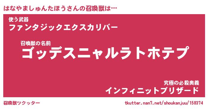 | 胡散臭い通販商品みたいなあだ名 | 『モテモテ間違いなし霊験あらたかなお札…その名も「はなやましゅんたほう」』 |