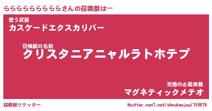 | 伝説のあだ名 | 『封印されしスナイパーららららららららら』 |