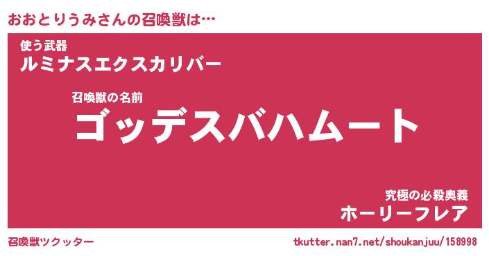 | 女子向けラノベタイトル風あだ名 | 『おおとりうみ姫と円卓の騎士』 |