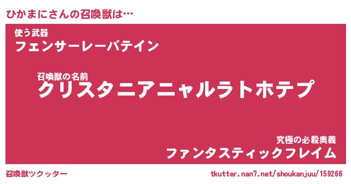 | 自動車の名前っぽいあだ名 | 『ヒカティマ』『ヒクア』『ヒント』 |