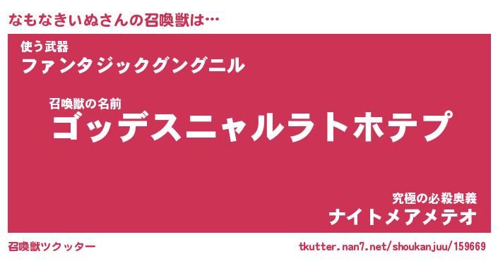 | 伝説のあだ名 | 『不死鳥のスナイパーなもなきいぬ』 |