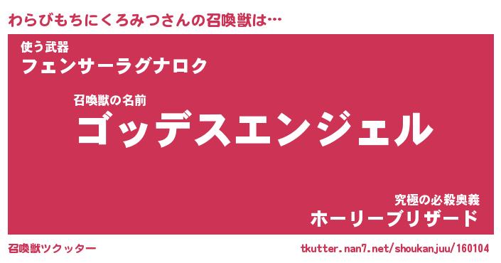 | 伝説のあだ名 | 『不死鳥の傭兵わらびもちにくろみつ』 |