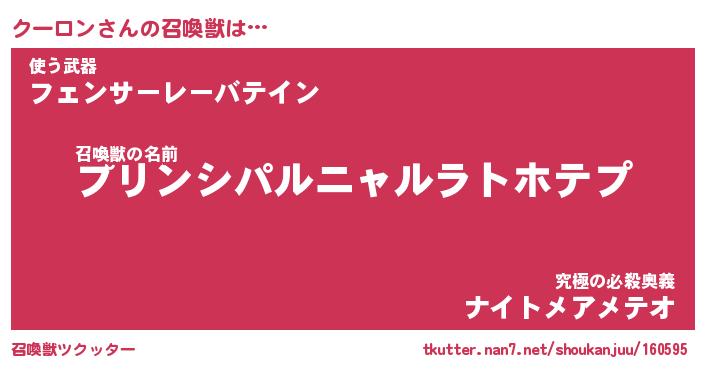 | 男性向けラノベタイトル風あだ名 | 『クーロンの憂鬱』 |