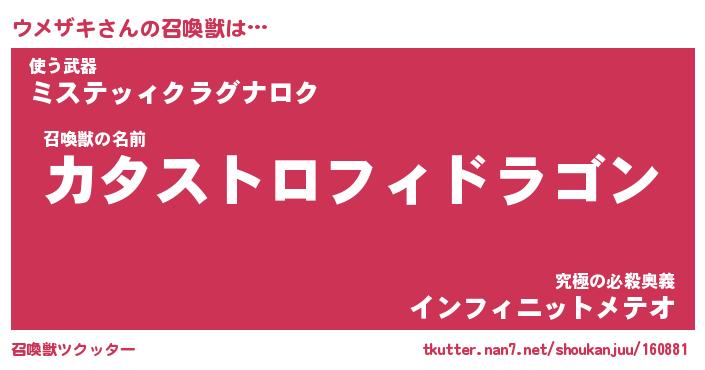 | ヒーロー風カッコイイあだ名 | 『スーパーウメザキ』『黄金騎士ウメ』 |