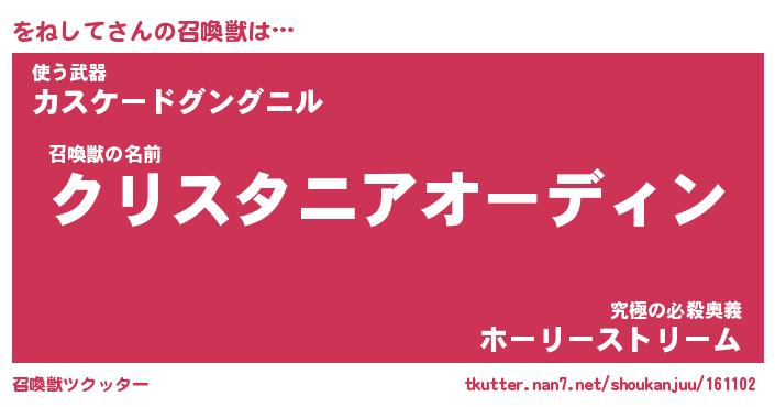 | ファンタジー風あだ名 | 『ヲネフェル』『エターナルヲネシテー』 |