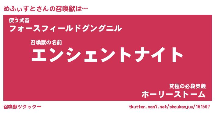 | ヒーロー風カッコイイあだ名 | 『スーパーメフィスト』『天弓騎士メフ』 |