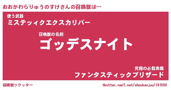 | 女子向けラノベタイトル風あだ名 | 『おおかわらりゅうのすけ姫と円卓の騎士』 |