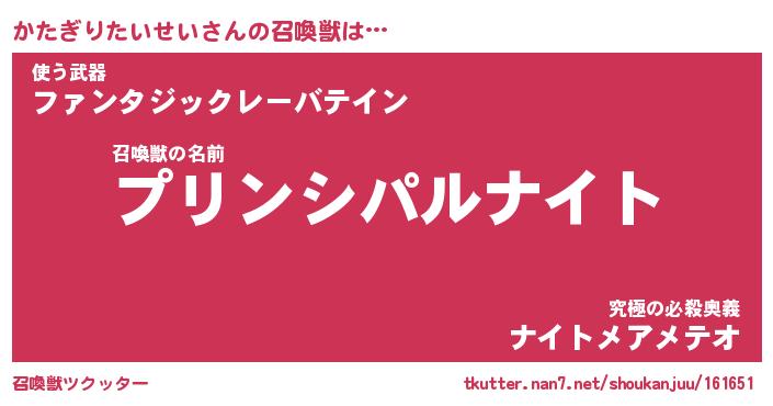 | 女子向けラノベタイトル風あだ名 | 『かたぎりたいせい姫と円卓の騎士』 |