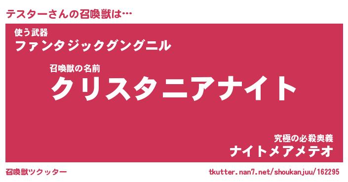 | 伝説のあだ名 | 『封印されし傭兵テスター』 |