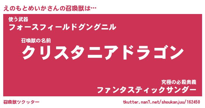 | 伝説のあだ名 | 『封印されし竜騎士えのもとめいか』 |