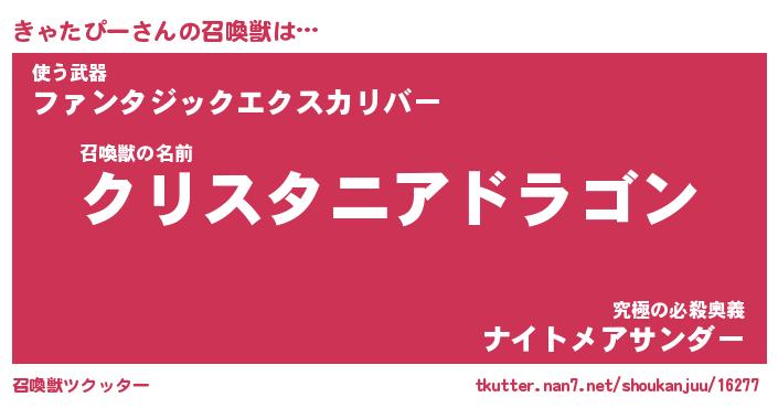 | 伝説のあだ名 | 『封印されし竜騎士きゃたぴー』 |