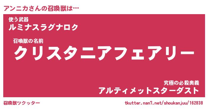 | ファンタジー風あだ名 | 『アンフェル』『エターナルアンニカー』 |