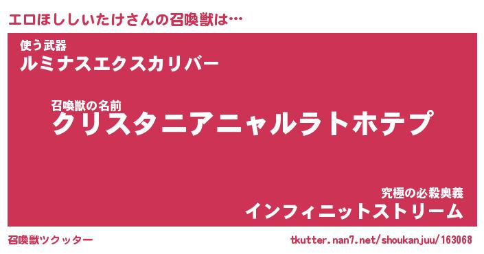 | 伝説のあだ名 | 『封印されしスナイパーエロほししいたけ』 |
