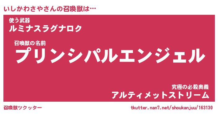 | ヒーロー風カッコイイあだ名 | 『スーパーイシカワサヤ』『魔戒騎士イシ』 |