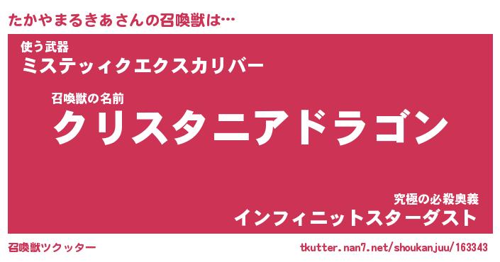 | 伝説のあだ名 | 『封印されし竜騎士たかやまるきあ』 |