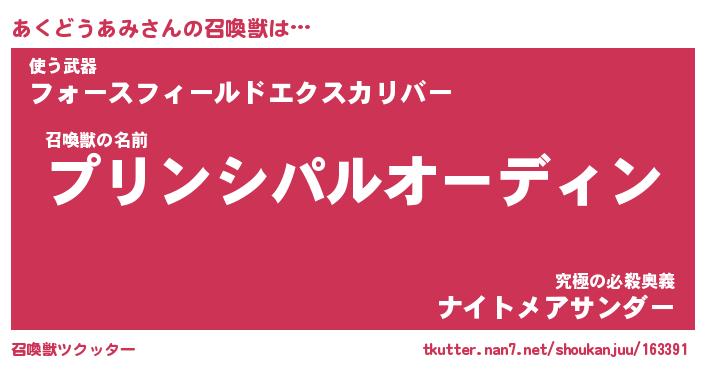| 女子向けラノベタイトル風あだ名 | 『あくどうあみ姫と円卓の騎士』 |