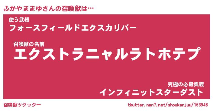 | 伝説のあだ名 | 『伝説のスナイパーふかやままゆ』 |