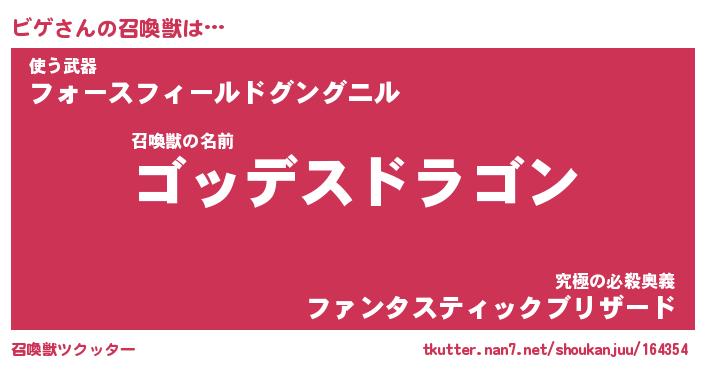 | ファンタジー風あだ名 | 『ビゲフェル』『エターナルビゲー』 |