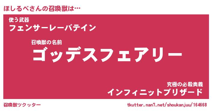 | ファンタジー風あだ名 | 『ホシフェル』『エターナルホシルベー』 |