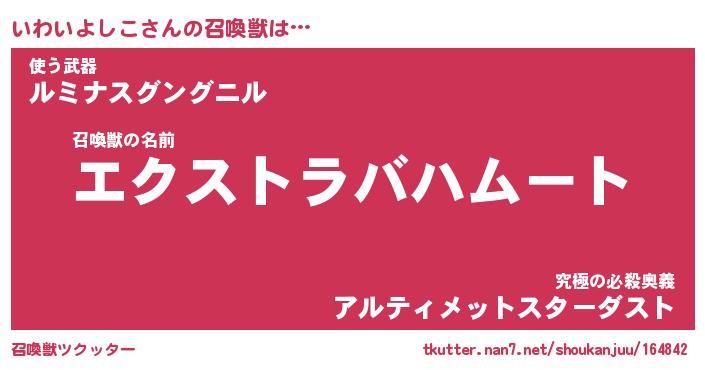 | ヒーロー風カッコイイあだ名 | 『スーパーイワイヨシコ』『魔戒騎士イワ』 |