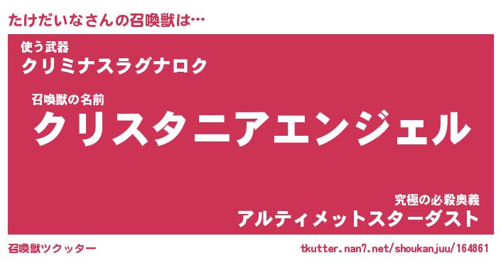 | ファンタジー風あだ名 | 『タケフェル』『エターナルタケダイナー』 |