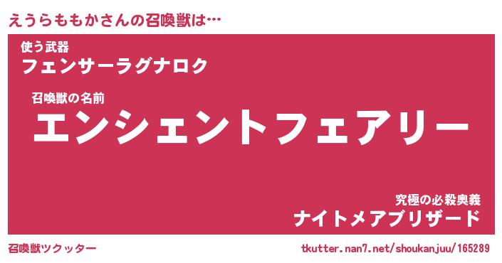 | 伝説のあだ名 | 『伝説の傭兵えうらももか』 |