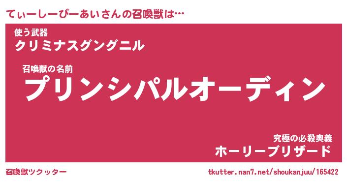 | 伝説のあだ名 | 『不死鳥のスナイパーてぃーしーびーあい』 |
