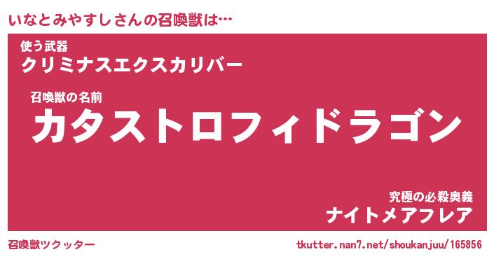 | 伝説のあだ名 | 『封印されし竜騎士いなとみやすし』 |