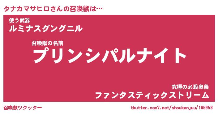 | 女子向けラノベタイトル風あだ名 | 『タナカマサヒロ姫と円卓の騎士』 |