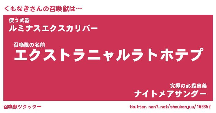 | ヒーロー風カッコイイあだ名 | 『スーパークモナキ』『幻影騎士クモ』 |
