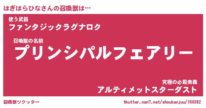 | 伝説のあだ名 | 『不死鳥の傭兵はぎはらひな』 |