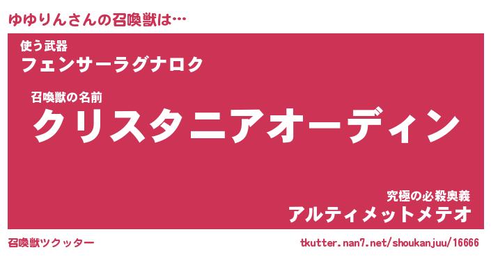 | ファンタジー風あだ名 | 『ユユフェル』『エターナルユユリンー』 |
