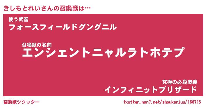 | ファンタジー風あだ名 | 『キシフェル』『ファントムキシス』 |