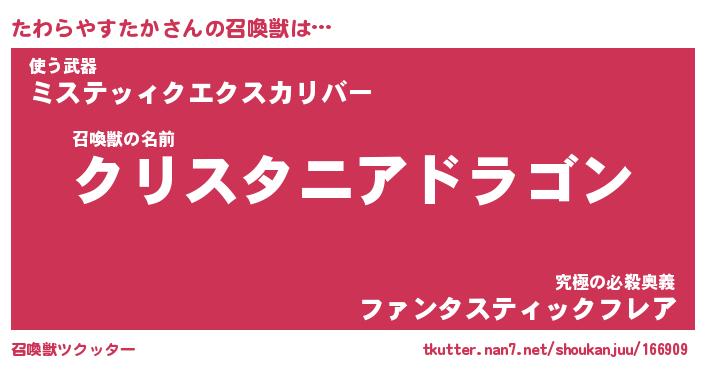 | 伝説のあだ名 | 『封印されし竜騎士たわらやすたか』 |
