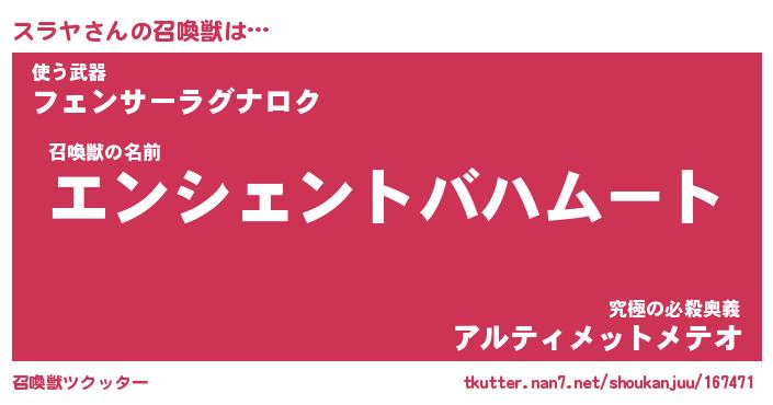 | ファンタジー風あだ名 | 『スラフェル』『エターナルスラヤー』 |