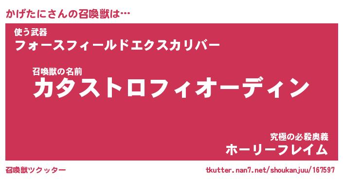 | ファンタジー風あだ名 | 『カゲフェル』『エターナルカゲタニー』 |