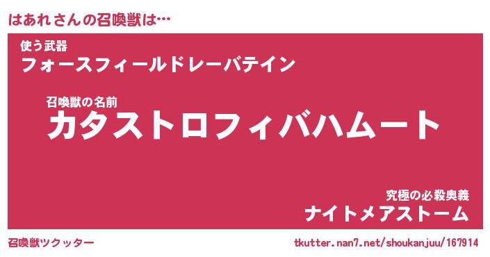 | 自動車の名前っぽいあだ名 | 『ハアティマ』『ハクア』『ヴィッハ』 |