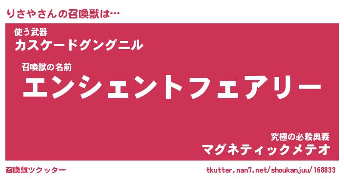 | ファンタジー風あだ名 | 『リサフェル』『エターナルリサヤー』 |