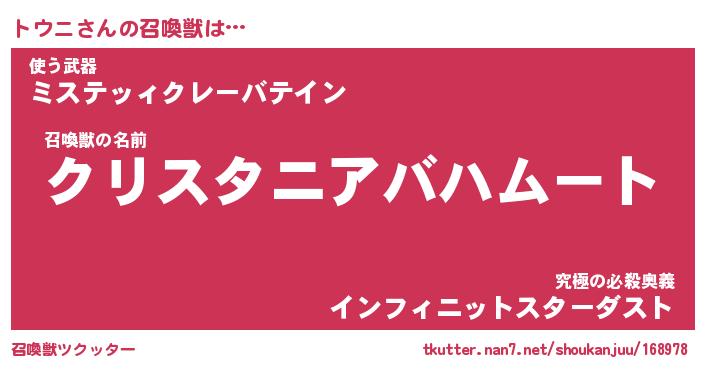 | ファンタジー風あだ名 | 『トウフェル』『エターナルトウニー』 |