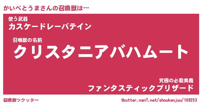 | 伝説のあだ名 | 『封印されし竜騎士かいべとうま』 |