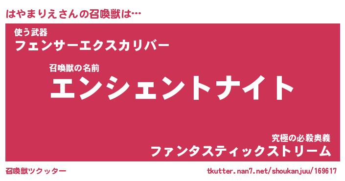 | ファンタジー風あだ名 | 『ハヤフェル』『エターナルハヤマリエー』 |
