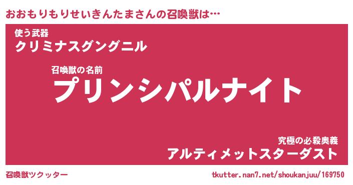 | 伝説のあだ名 | 『不死鳥の傭兵おおもりもりせいきんたま』 |