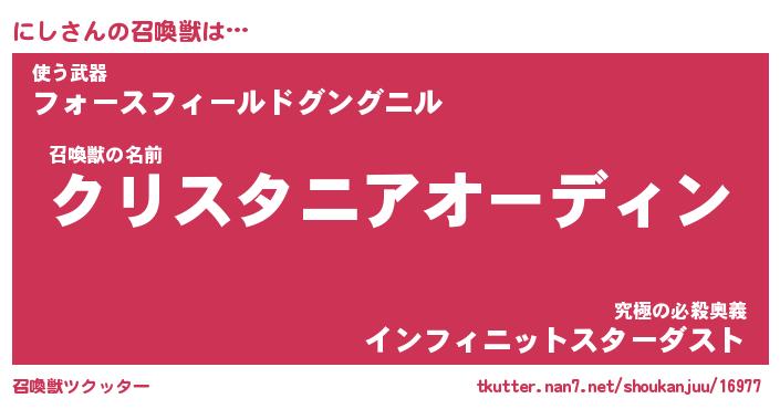 | ポケモン風あだ名 | 『ニシチュウ』『ニシダネ』『ヒニシ』 |