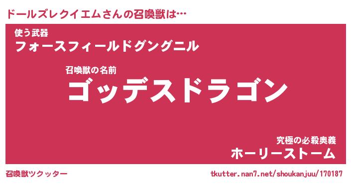| 料理風あだ名 | 『節約★ドールズレクイエムと油揚げの玉子丼』 |