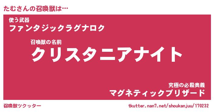 | ファンタジー風あだ名 | 『タムフェル』『エターナルタムー』 |