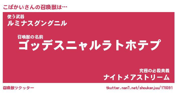 | ファンタジー風あだ名 | 『コバフェル』『エターナルコバカイー』 |