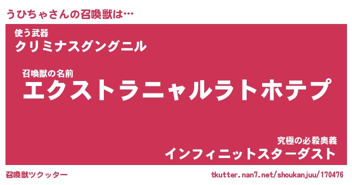 | ポケモン風あだ名 | 『ウヒチュウ』『ウヒチダネ』 |
