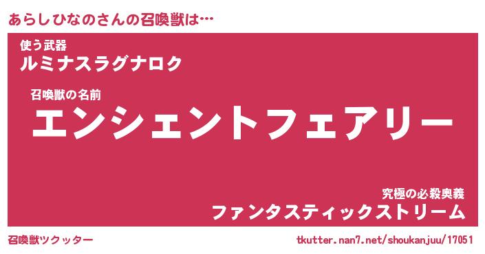 | ヒーロー風カッコイイあだ名 | 『スーパーアラシヒナノ』『天弓騎士アラ』 |