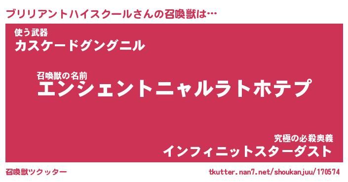 | 伝説のあだ名 | 『伝説のスナイパーブリリアントハイスクール』 |