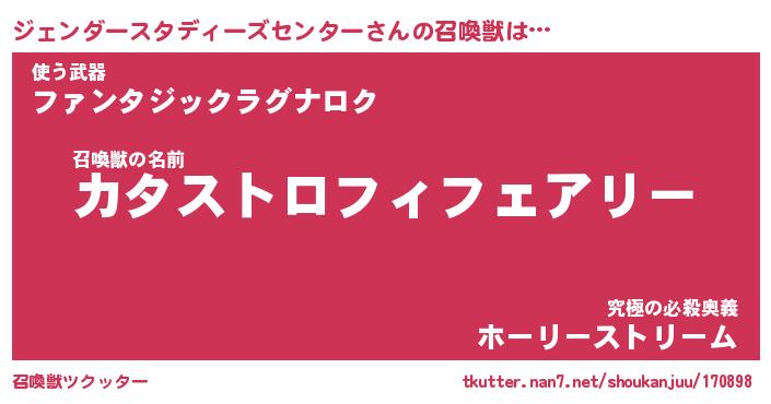 | 伝説のあだ名 | 『封印されし竜騎士ジェンダースタディーズセンター』 |